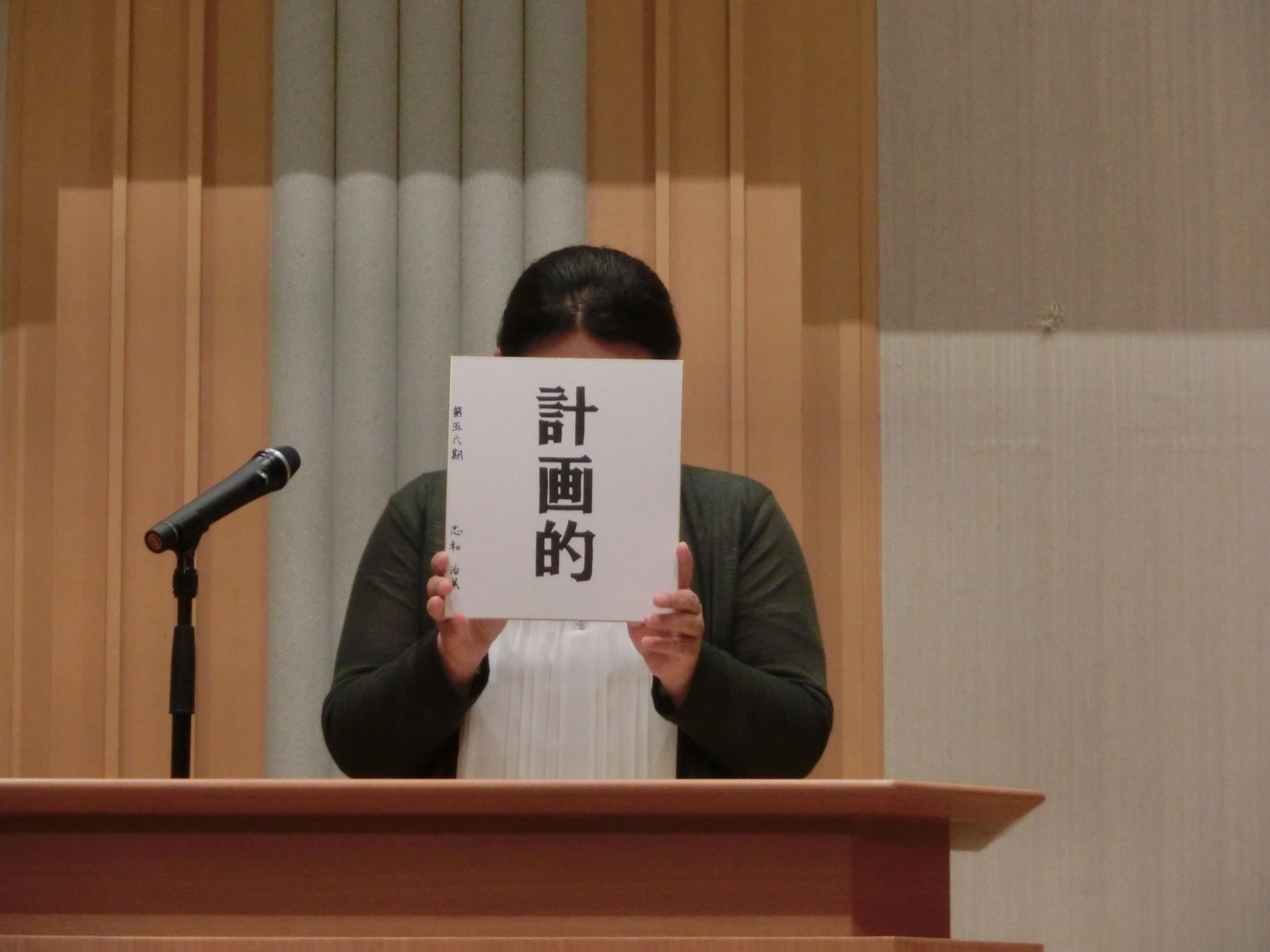 第54期のスローガンは「自分を生かす」。チームワークはチームのために自分を殺し、献身的な姿勢が美化されるが、個人の特質を生かすことこそが本当のチームワークではないか。上からやれと圧力をかけられてやる仕事では本当の力は発揮できない。個人のモチベーションが内から出てくることで最大の成果が出る。内なる動機で自らを律し、「自分を生かす」一年にします。